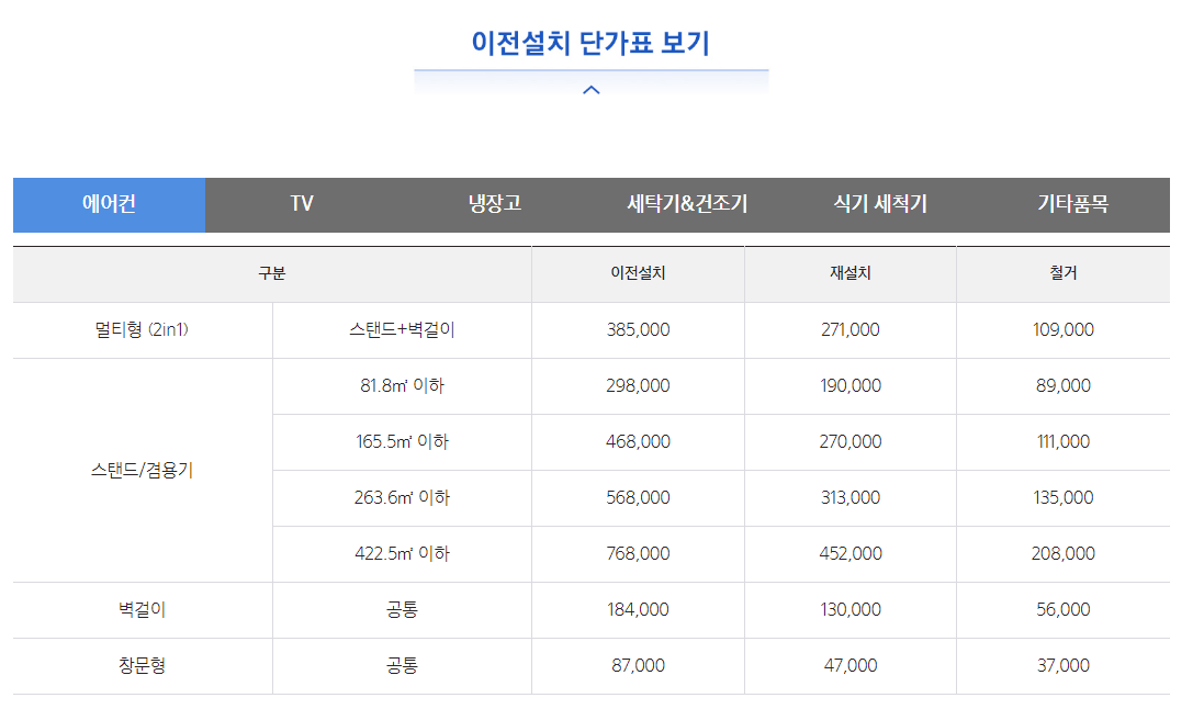 케리어 에어컨 이전 설치비용