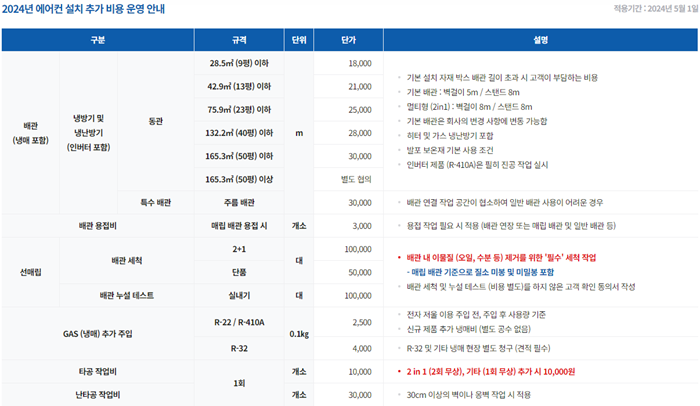 삼성에어컨 설치시 추가비용