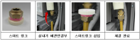 스마트 링크는 동배관 및 코팅알루미늄 배관을 모두 사용할 수 있으며, 배관 사이즈에 따라 스마트링크 색상이 구분되어 있습니다.