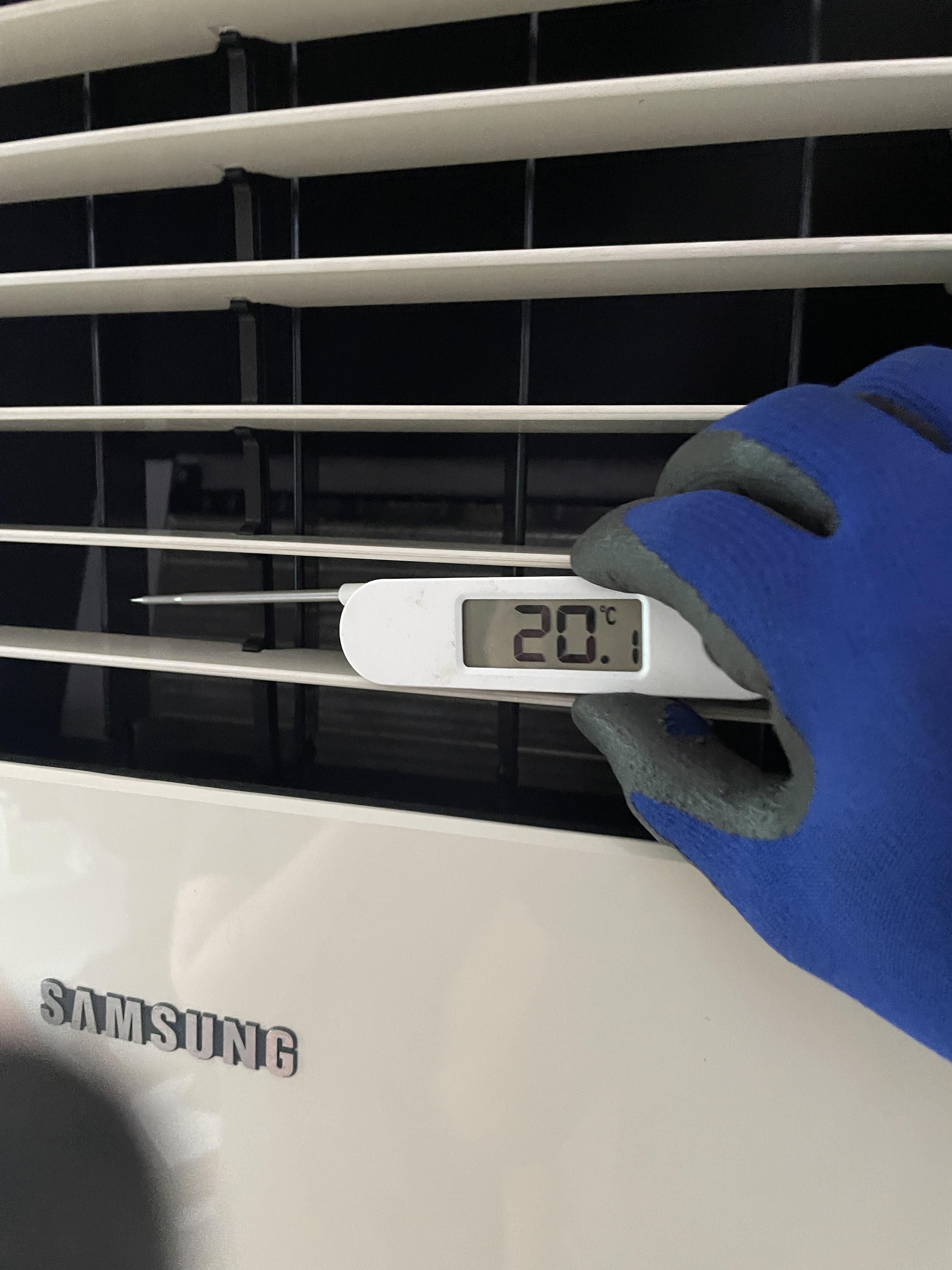 토출온도는 20도를 가리키네요...
